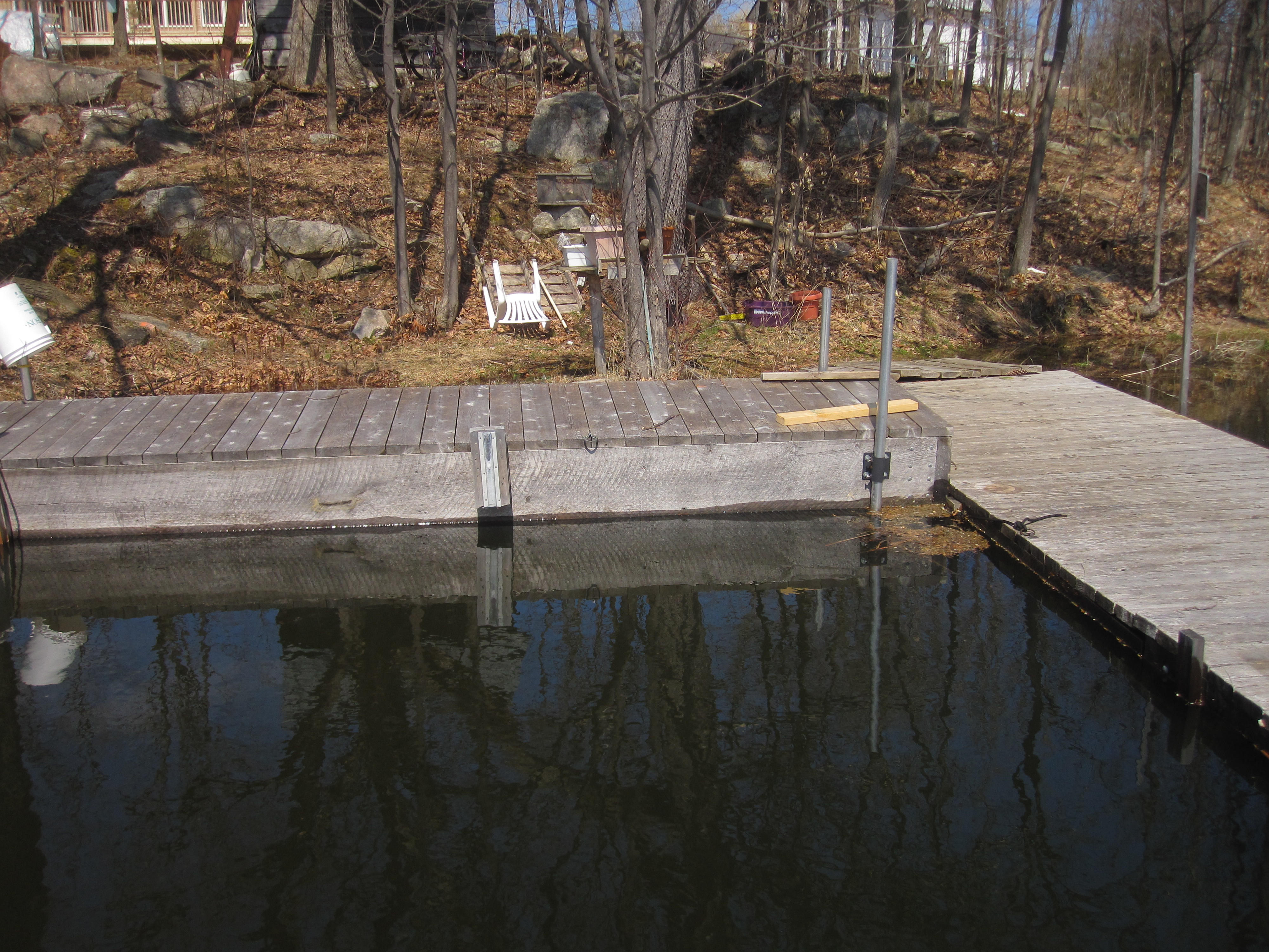 Was at the township dock yesterday. The docks are free floating, with a slush mix out about 50 feet. I threw some large rocks further out and the ice is still pretty solid in the middle. Through my binoculars I can tell my floating docks over at the cottage are still well cemented in ice.