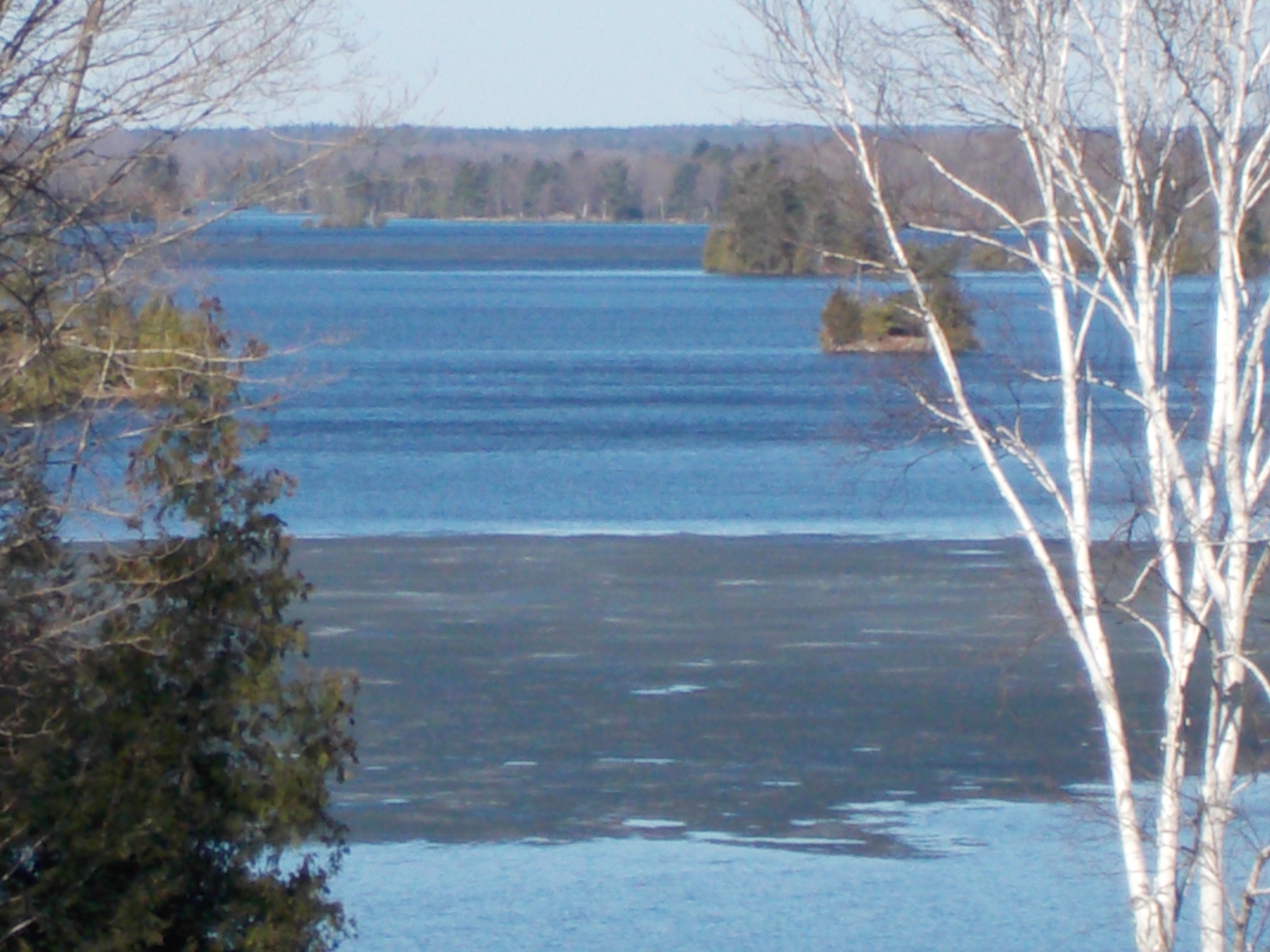 I can still see ice this morning from our cottage on Swallows Lane. The ice I see is off in the distance as I look at the east end of Makay Island. But the bulk of the ice is now gone as I look down the lake towards Cherry Island and the main docks.