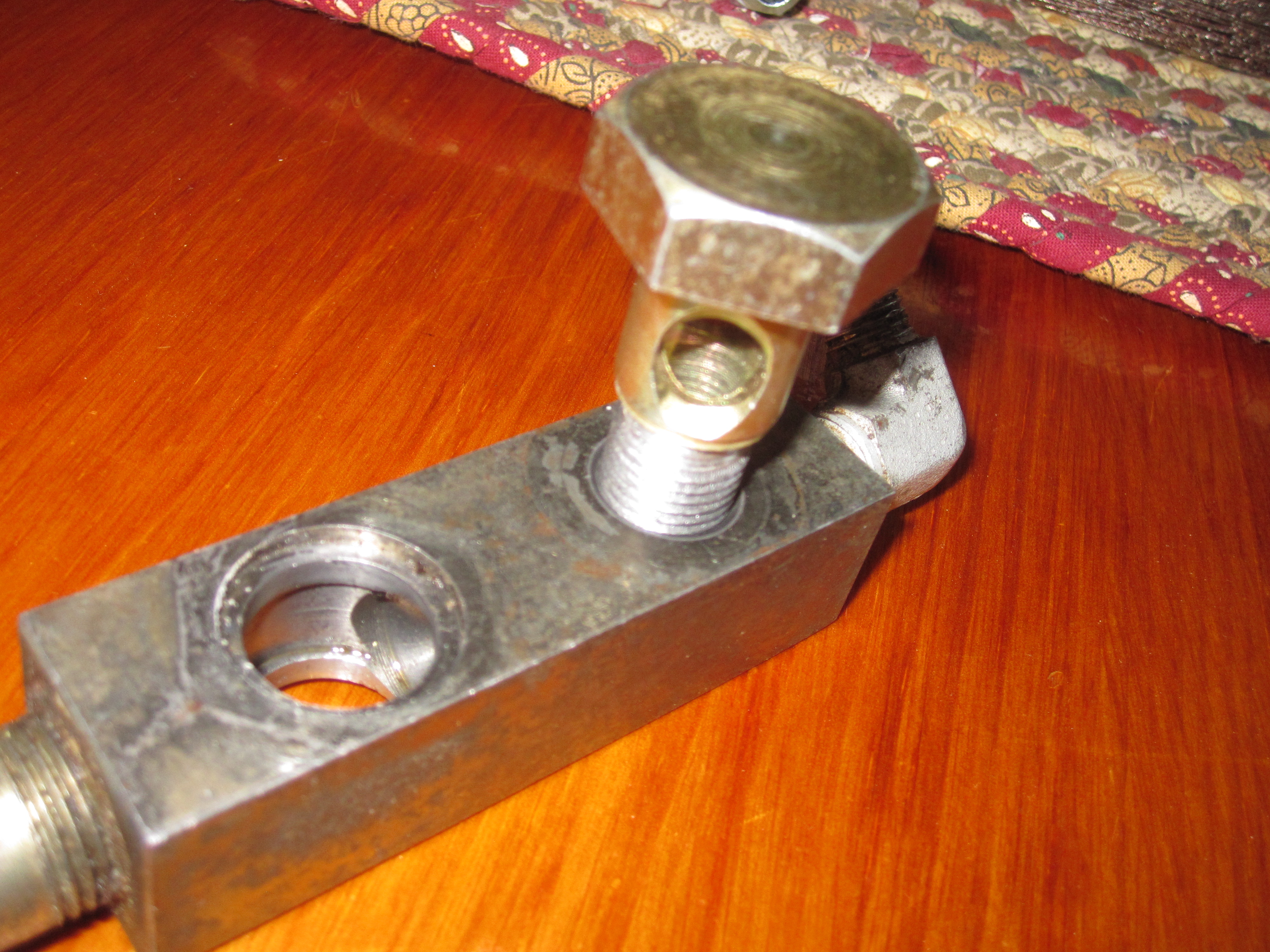 I took the whole thing over to Peter and asked him if he could cut the bolt down and thread it to fit. He said he didn’t have a die of that size, but he could cut the threads on his lathe.
